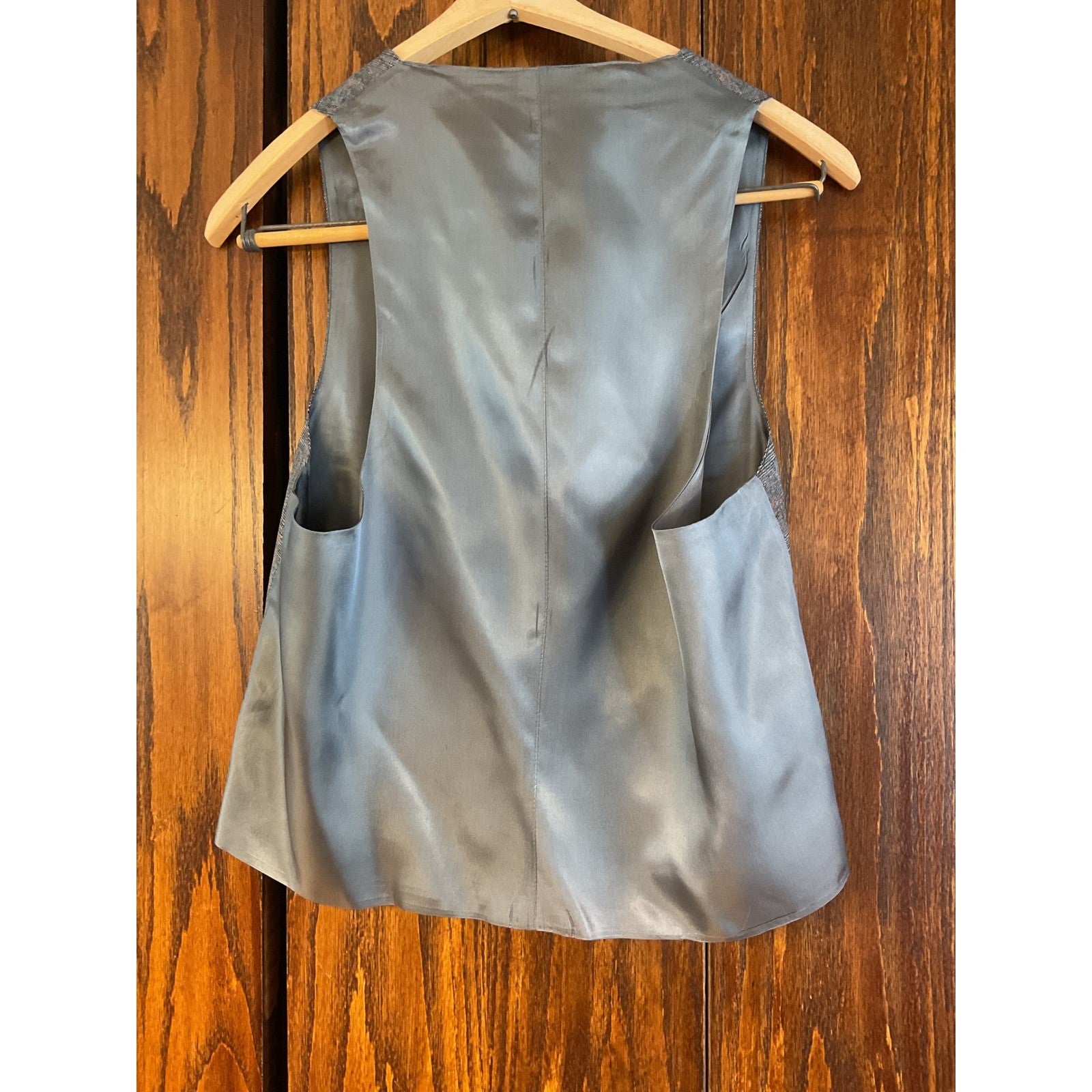 This vintage, formal suit includes pants, a vest, and a coat and may have some natural wear and tear.